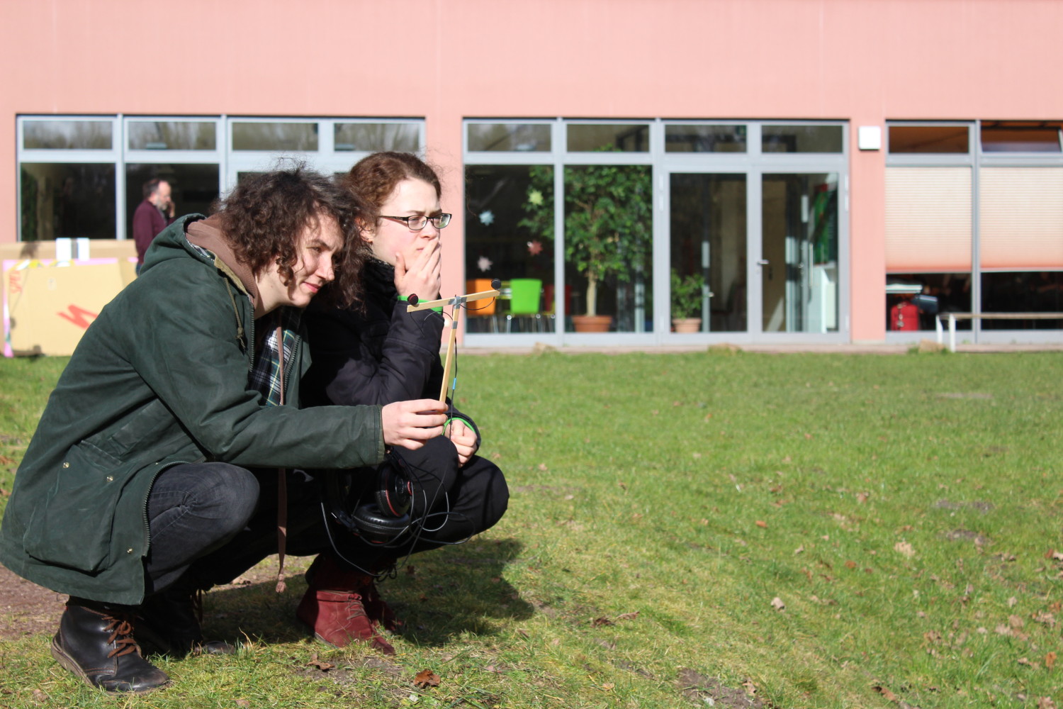 Im Workshop Musik/Soundcollage von Connie Walker zogen die Teilnehmer_innen mit Aufnahmegeräten los, um verschiedenste Geräusche aus der Villa und rundherum einzufangen. Die gesammelten Sounds reichten von dem Kratzen eines Rechens und Wasserplätschern bis hin zum Miauen der hauseigenen Katze. Anschließend wurden ausgewählte Geräusche zu einer atmosphärigen Soundcollage zusammengebastelt. Der Workshop-Teilnehmer Tobias (20) hat auch bei seinem FSJ Kultur mit Geräuschen und Musik zu tun – er leistet seinen Freiwilligendienst bei Radio Corax in Halle. »Ich mache ein FSJ, da ich nach der Schule noch nicht wusste, was ich studieren wollte«, erzählte er. Wie die anderen Freiwilligen organisiert auch Tobias ein eigenverantwortliches Projekt im Rahmen seines Freiwilligendienstes: »Zusammen mit Omar, der einen Bundesfreiwilligendienst Flucht und Asyl absolviert, plane ich eine Radiosendung in deutscher und arabischer Sprache.«